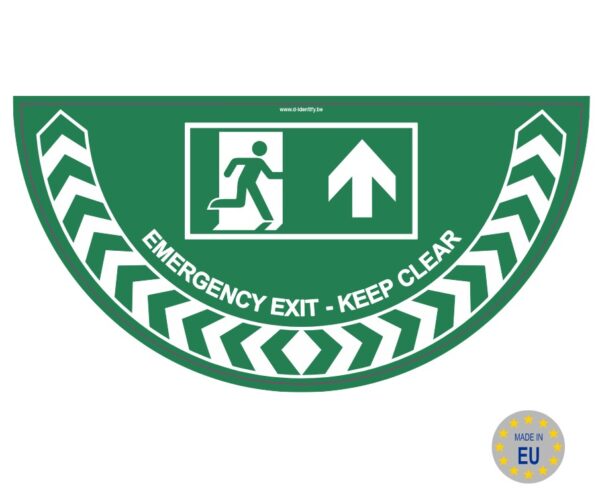 Daarnaast is de vloermarkering nooduitgang vrijhouden standaard voorzien van een antisliplaag, waardoor veiligheid gegarandeerd blijft, zelfs in natte of gladde omstandigheden. De gebruikte symbolen zijn ISO 7010-conform, wat betekent dat ze voldoen aan internationale veiligheidsnormen en optimale zichtbaarheid bieden.