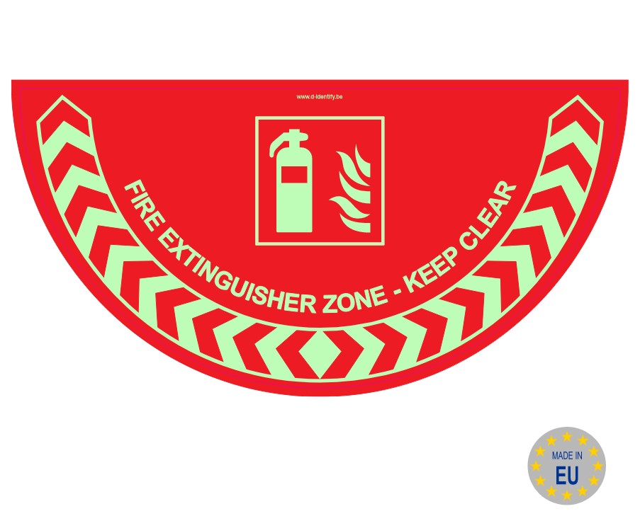 Our floor marking for keeping fire extinguishers clear is made of Glow-in-the-Dark vinyl, which meets the DIN 67510-1 standards for phosphorescent materials. The material is durable, abrasion-resistant, and provides excellent UV and weather resistance. Combined with an anti-slip laminate, it ensures safe and visible markings, even in the dark. Ideal for industrial environments where safety is a priority.